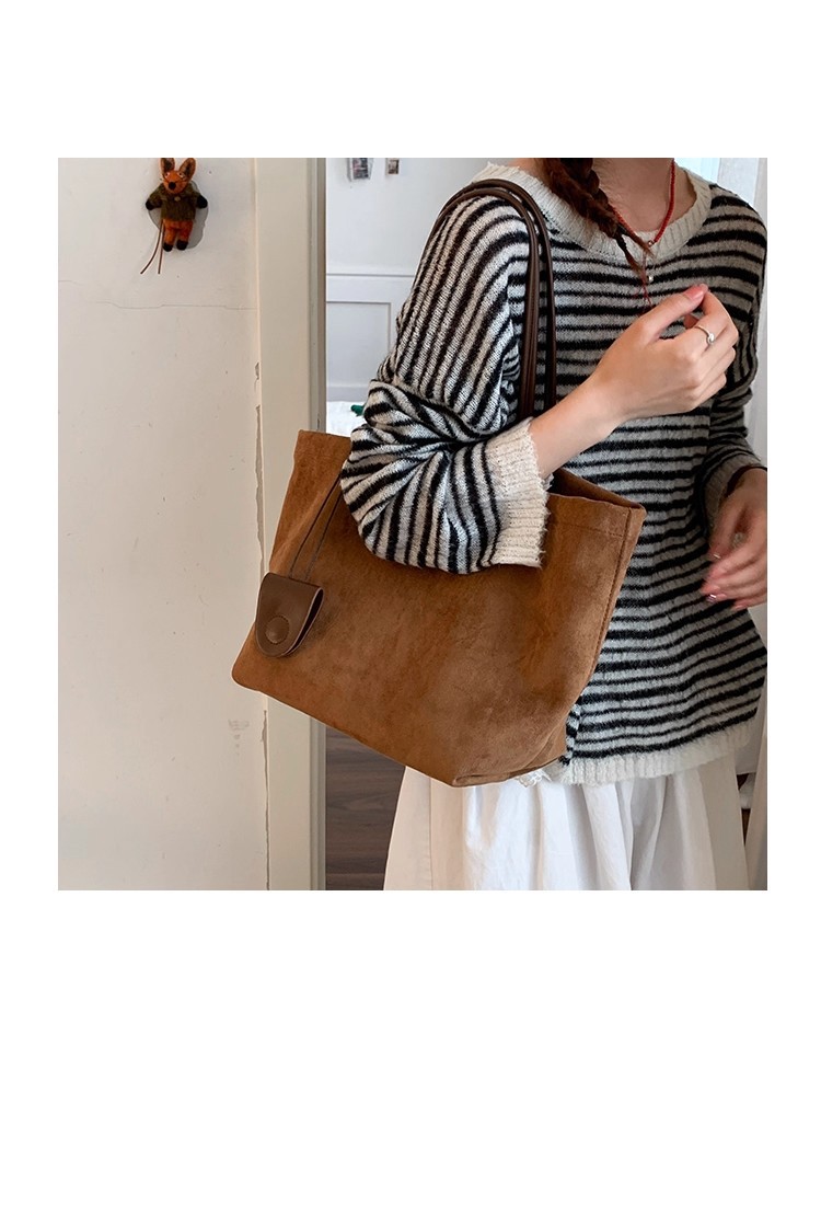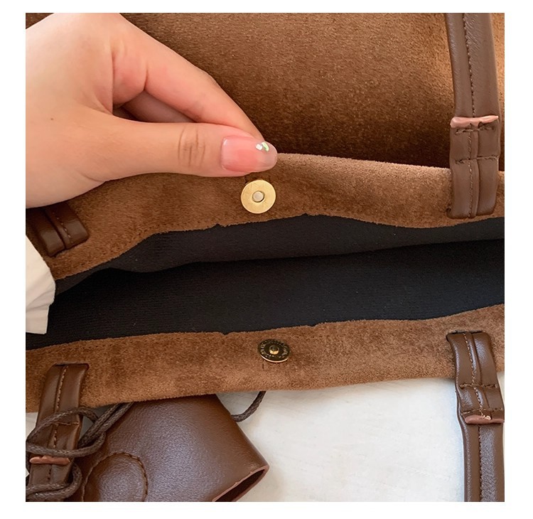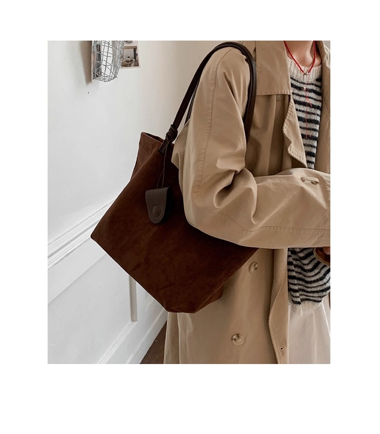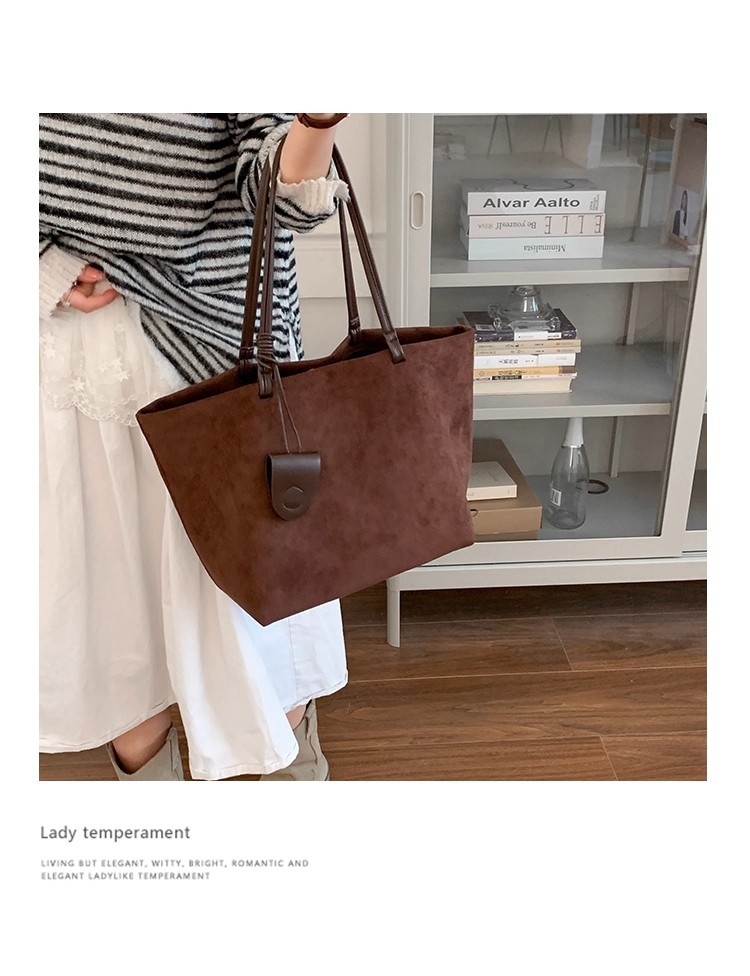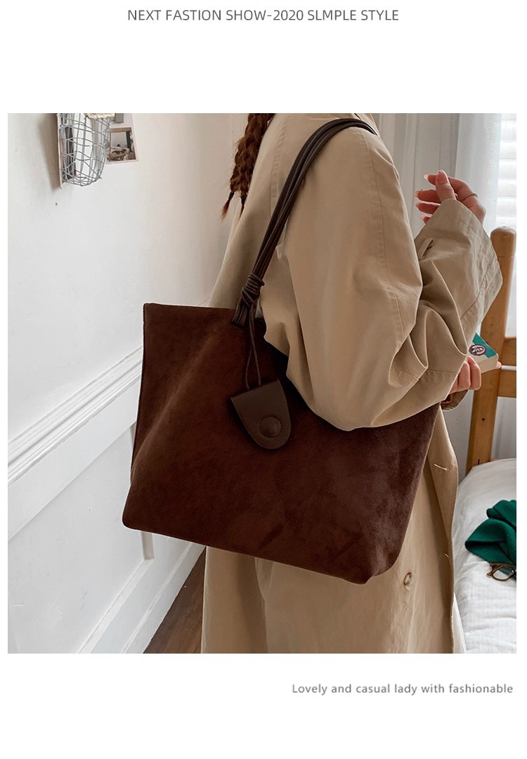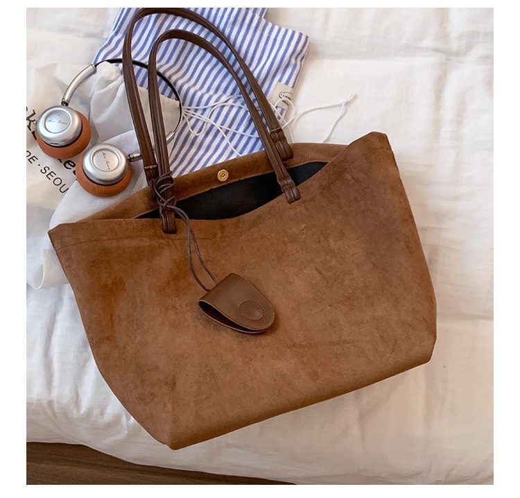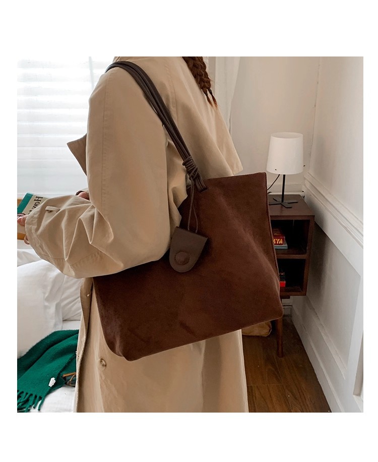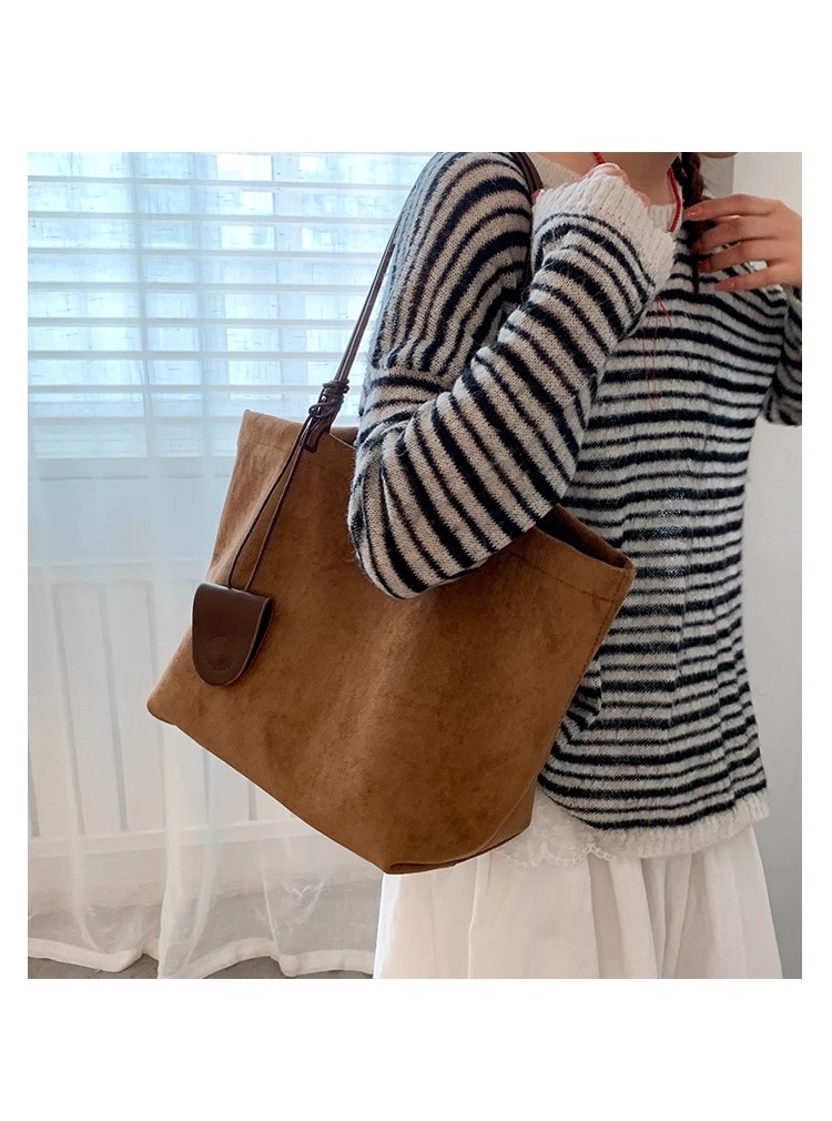 The large capacity makes it practical for daily use without sacrificing style. Its rich suede texture and classic brown tone bring warmth and refinement, making it a perfect accessory for the autumn and winter seasons.