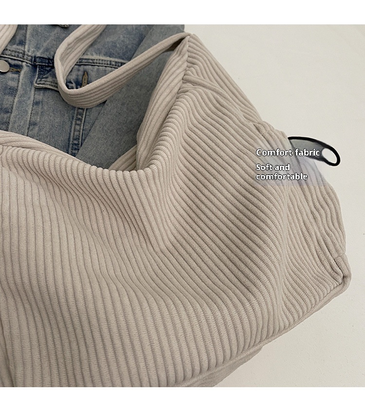 Made from high-quality corduroy material, this tote bag has a warm and soft touch that stands out in every season. The medium-soft structure gives it a relaxed yet durable form, allowing it to hold your essentials without losing shape. Its simple and casual design makes it suitable for work, school, shopping, or leisure travel.