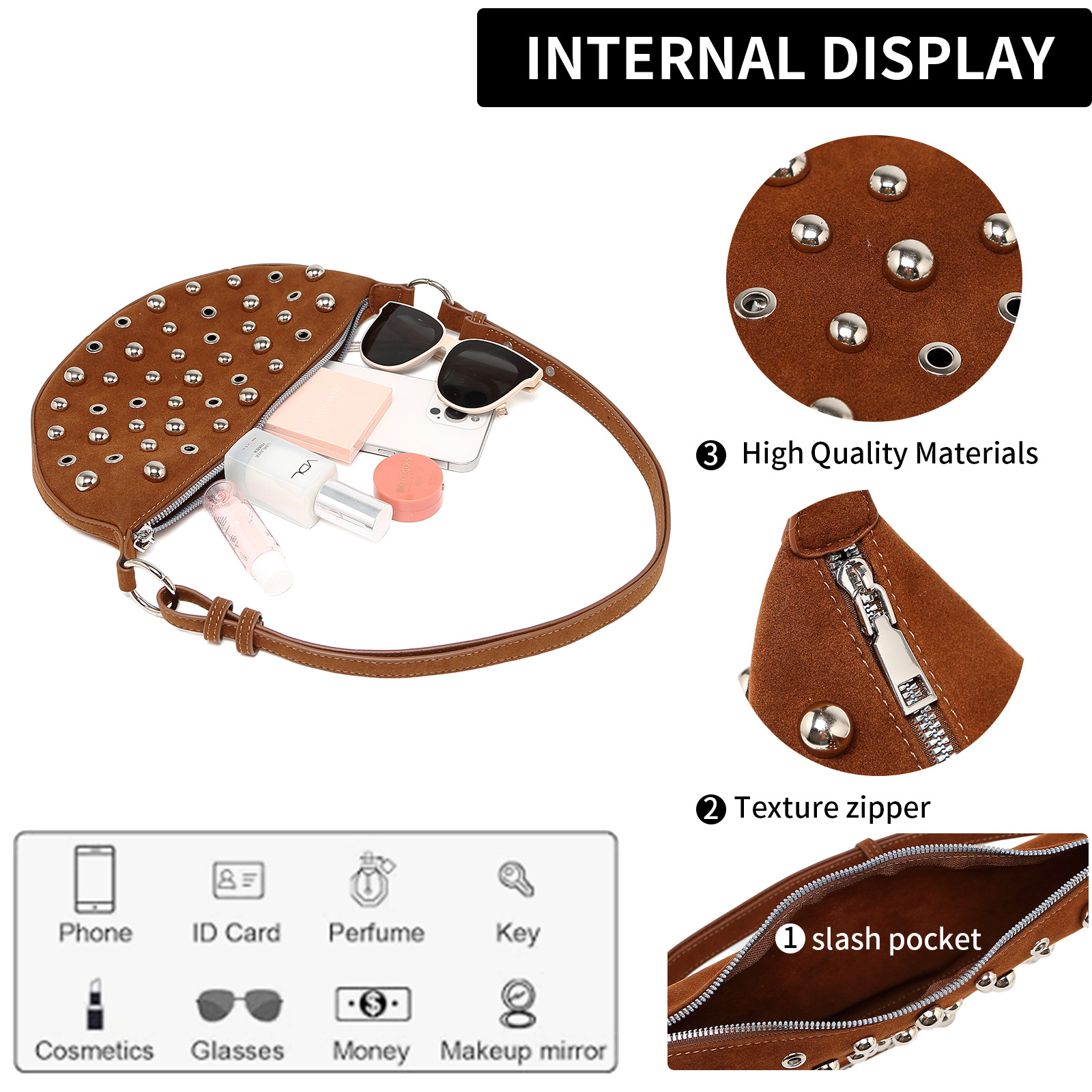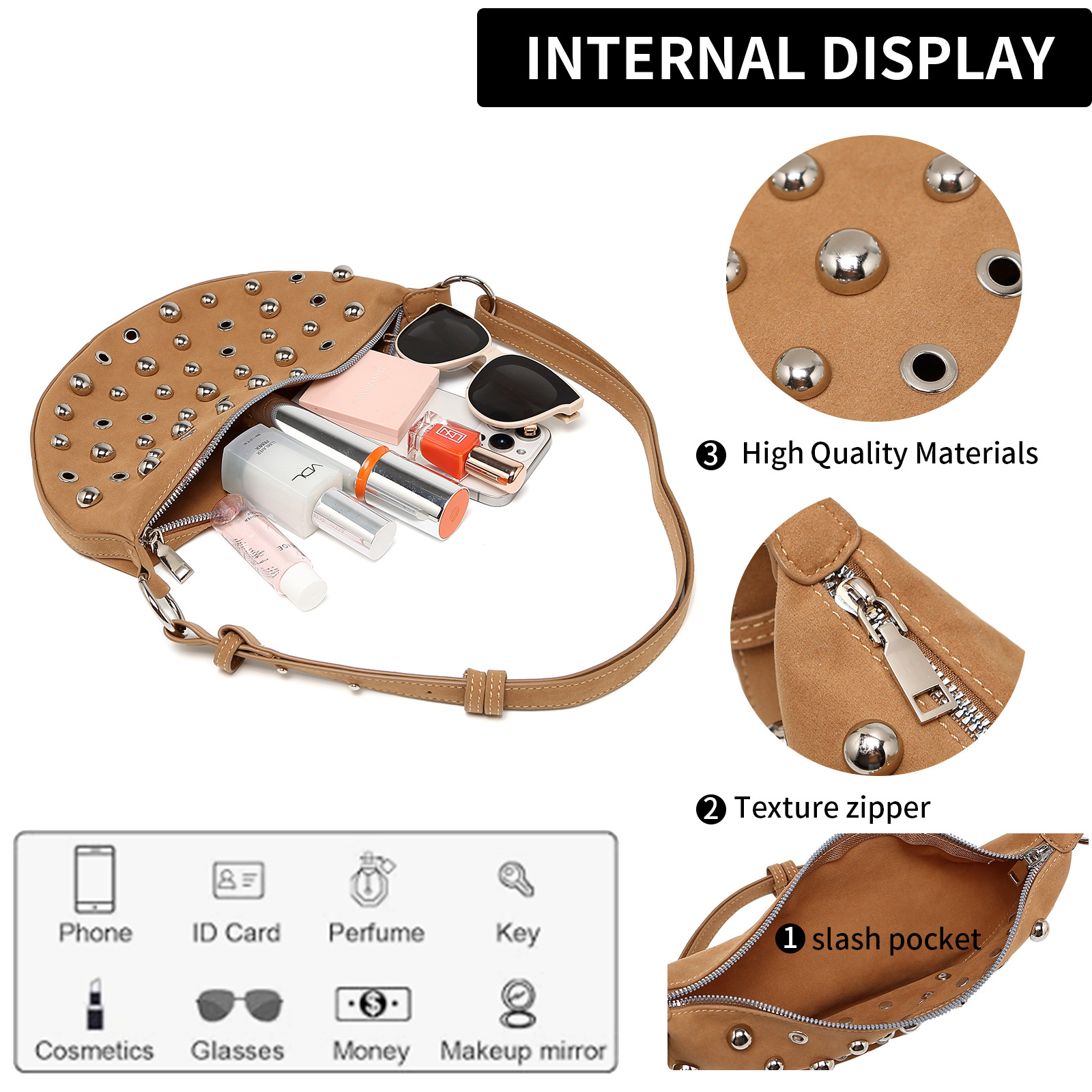 Bring bold style and everyday comfort together with the Fashion Retro Rivet Crossbody Bag Metallic Matte Underarm Bag. This elegant yet edgy accessory is perfect for women who love fashion with a touch of personality.